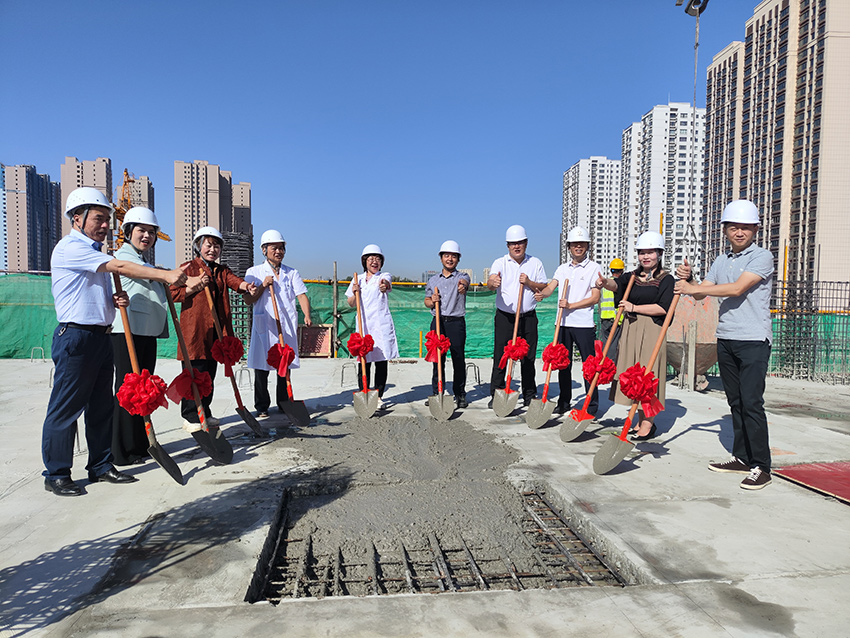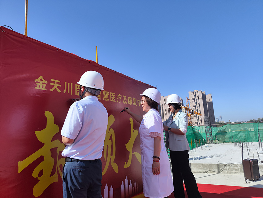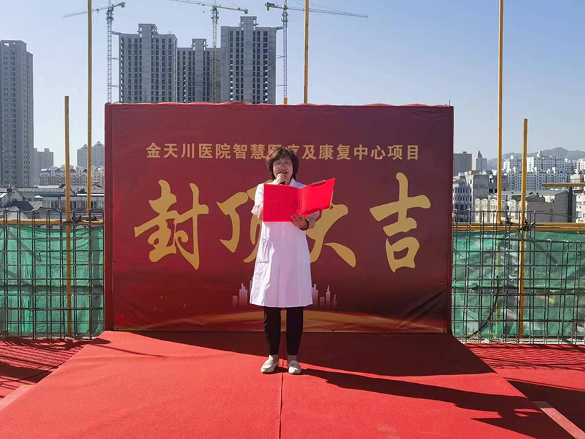 9月3日上午,金天川醫(yī)院隆重舉行喜封金頂儀式。今天的儀式發(fā)展重要的全體醫(yī)護人員,施工單位,設計單位,監(jiān)理單位代表參加了今天的封頂儀式。集團公司副總經理、金天川醫(yī)院總經理劉昆女士發(fā)表了熱情洋溢的講話,劉昆副總強調今天是醫(yī)院發(fā)展史上的一個里程碑,金天川醫(yī)院即將翻開嶄新的一頁。施工單位新疆七星科技股份有限公司代表現(xiàn)場進行了表態(tài)發(fā)言,表示將保證醫(yī)院大樓能夠保質保量如期交付使用。隨著封頂禮炮燃起,最后一罐混凝土完成澆筑,標志著醫(yī)院正式封頂!
