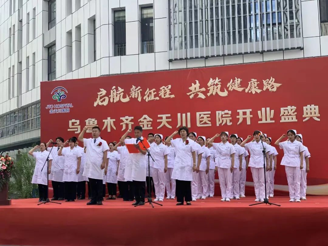 隨后金天川醫(yī)院的醫(yī)護人員代表上臺宣讀希波克拉底誓言。