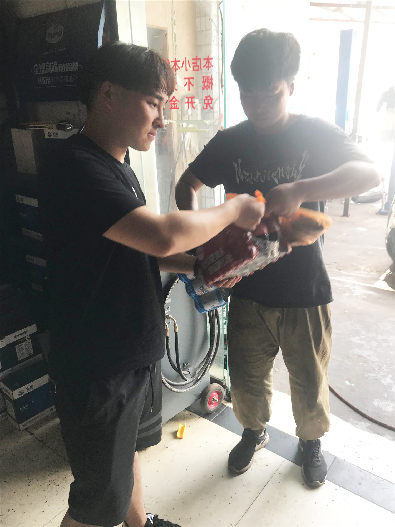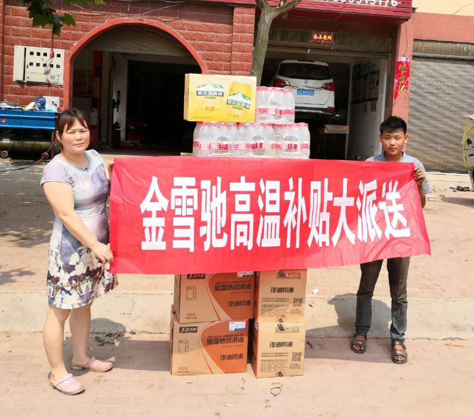 長時(shí)間高溫工作,體能消耗很大,極易出現(xiàn)中暑的情況。金雪馳送清涼小組成員與當(dāng)?shù)亟?jīng)銷商來到全國每一家金雪馳終端修理門店,為他們送去礦泉水、啤酒、粽子、飲料等夏季清涼物資,真真正正地把“清涼”送到一線。在終端門店,金雪馳送清涼小組成員還就如何在高溫天氣下開展作業(yè)及如何做好防暑降溫的小常識對汽修工們進(jìn)行普及,目的是讓維修師傅們能夠在高溫環(huán)境下有更好的自我保護(hù)意識和能力,減少中暑等意外狀況的發(fā)生。