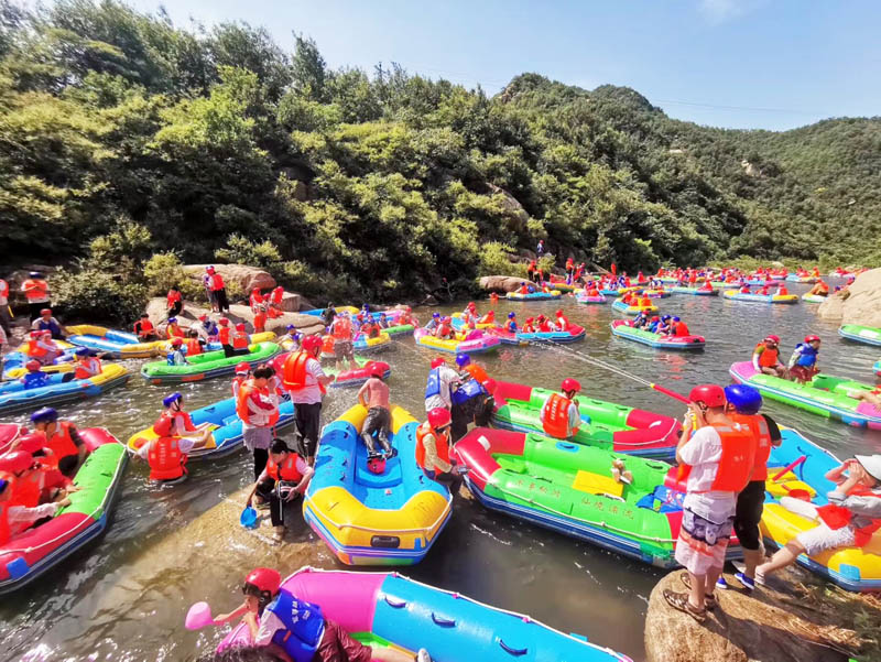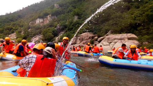 在悠長的河谷中,一座座山嶺飛恃岸邊,形成數(shù)個S道,一彎未過,一彎又起,峰回路轉(zhuǎn),彎彎相連,給人以“山重水復、柳暗花明 ”的不同感受。大家一起打水仗、撞劃艇,嬉笑聲、吶喊聲此起彼伏,不絕于耳,仿佛回到了童年,忘記了城市的喧囂,忘記了生意的煩惱、修理的勞累,歡笑聲匯集成了一首首歡快的贊歌。
