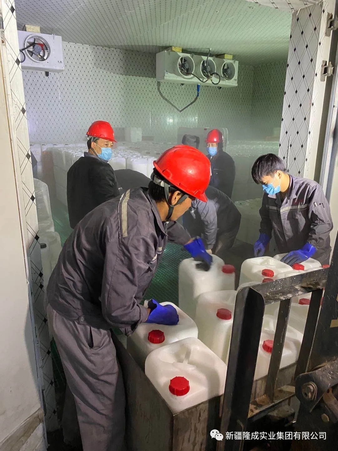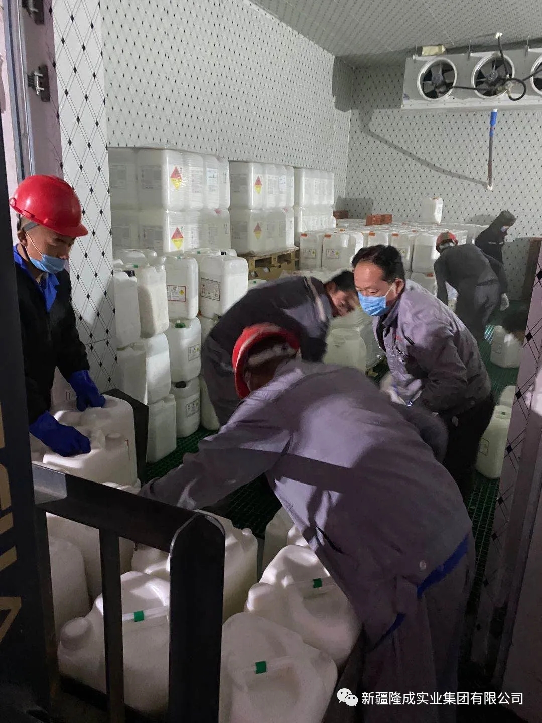 烏魯木齊市華泰隆化學(xué)助劑有限公司的領(lǐng)導(dǎo)干部和各職能部門的員工、工人迎接著朝陽(yáng)開始在裝運(yùn)發(fā)車。為了保障供應(yīng),貨物的正常發(fā)出,零下二十幾度的冷庫(kù)擋不住他們的腳步,大風(fēng)大雨也抵不住他們堅(jiān)定的工作信念。