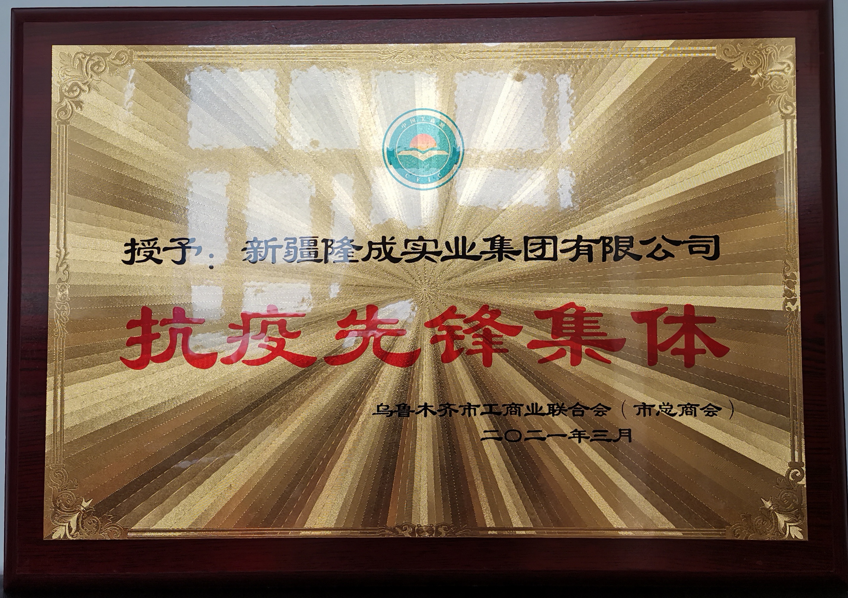 新疆隆成實業(yè)集團有限公司被烏魯木齊市工商業(yè)聯(lián)合會(市總商會)評為“抗疫先鋒集體”榮譽稱號。