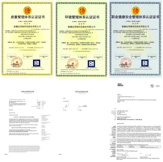 更高標(biāo)準(zhǔn),生機(jī)勃發(fā)。2020年,金雪馳多款產(chǎn)品通過(guò)美國(guó)石油協(xié)會(huì)(API)SP以及國(guó)際潤(rùn)滑劑標(biāo)準(zhǔn)化及認(rèn)證委員會(huì)(ILSAC)GF-6A環(huán)保節(jié)能的國(guó)際權(quán)威認(rèn)證證書,憑借國(guó)際領(lǐng)先的潤(rùn)滑技術(shù)研發(fā)實(shí)力,金雪馳成為國(guó)際首批獲得此認(rèn)證的潤(rùn)滑油企業(yè)。2021年,金雪馳1號(hào)0W-20產(chǎn)品通過(guò)奔馳MB 229.71認(rèn)證,再次驗(yàn)證了金雪馳潤(rùn)滑油達(dá)到了國(guó)際相關(guān)技術(shù)、參數(shù)與指標(biāo)的過(guò)硬要求。?2022年,金雪馳首發(fā)滿足國(guó)六排放標(biāo)準(zhǔn)、具有更長(zhǎng)換油周期的C系列產(chǎn)品,獲得市場(chǎng)認(rèn)可,產(chǎn)品暢銷全國(guó)終端門店;金雪馳1號(hào)獲得BMW Longlife-04標(biāo)準(zhǔn)認(rèn)證,金雪馳風(fēng)電齒輪油Synnosynth LY PAO 320 獲得FLENDER(弗蘭德)認(rèn)證;金雪馳藍(lán)油全合成0W-20通過(guò)大眾VW 508 00/VW 509 00標(biāo)準(zhǔn)認(rèn)證。作為潤(rùn)滑油的品質(zhì)堅(jiān)守者,金雪馳始終堅(jiān)持以技術(shù)為核心驅(qū)動(dòng),通過(guò)技術(shù)融合、創(chuàng)新、延伸來(lái)打造優(yōu)質(zhì)產(chǎn)品,從而實(shí)現(xiàn)品牌和企業(yè)的可持續(xù)發(fā)展。